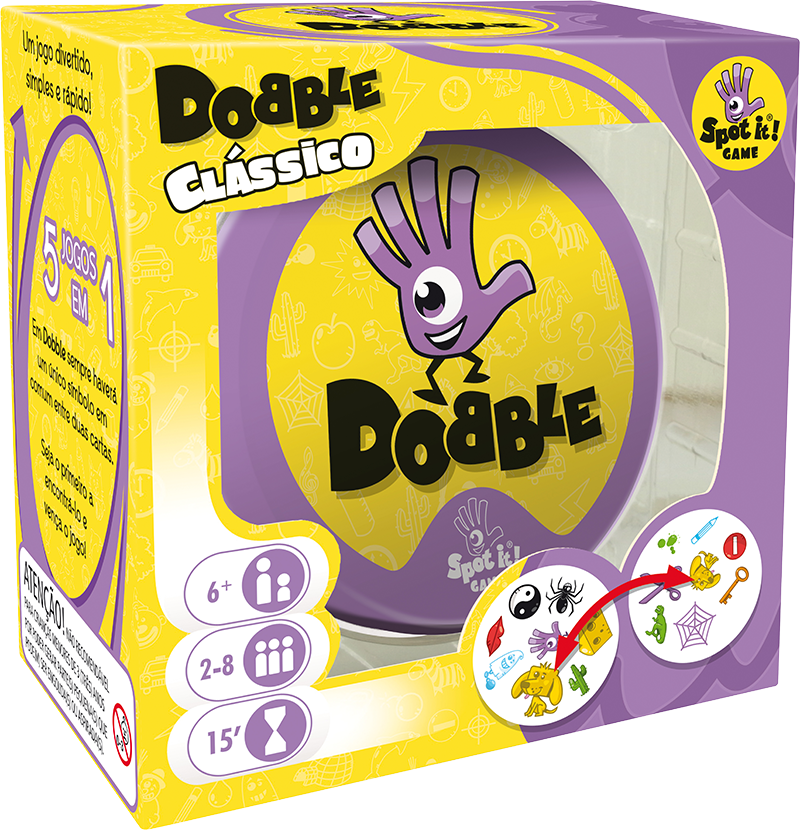 Dobble é um jogo de sucesso mundial, um verdadeiro desafio de velocidade e observação no qual todos jogam ao mesmo tempo! O objetivo é conseguir identificar qual é o símbolo em comum entre duas cartas - e cada carta tem somente um símbolo em comum com qualquer outra carta do baralho. Todos os participantes têm a mesma chance de ganhar a rodada, por isso é preciso ser ágil!